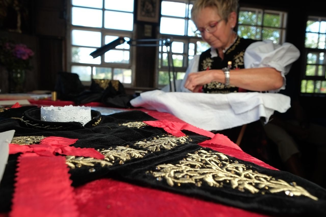 Goldstickerin zeigt bei den Holzschneflertagen ihre Fingerfertigkeiten. Foto: Birgit-Cathrin Duval